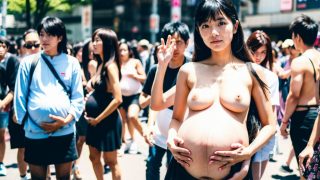 ボテ腹妊婦露出